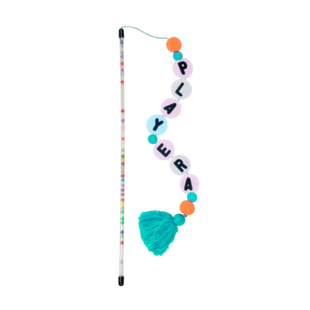 Orientações de Segurança e Uso Importante: Este é um brinquedo de interação mútua. Nenhum produto é aconselhado deixar o animal sozinho com ele. Após a brincadeira, guarde a varinha fora do alcance do gato para evitar riscos com o cordão. Inspecione sempre o estado das letras e miçangas.
