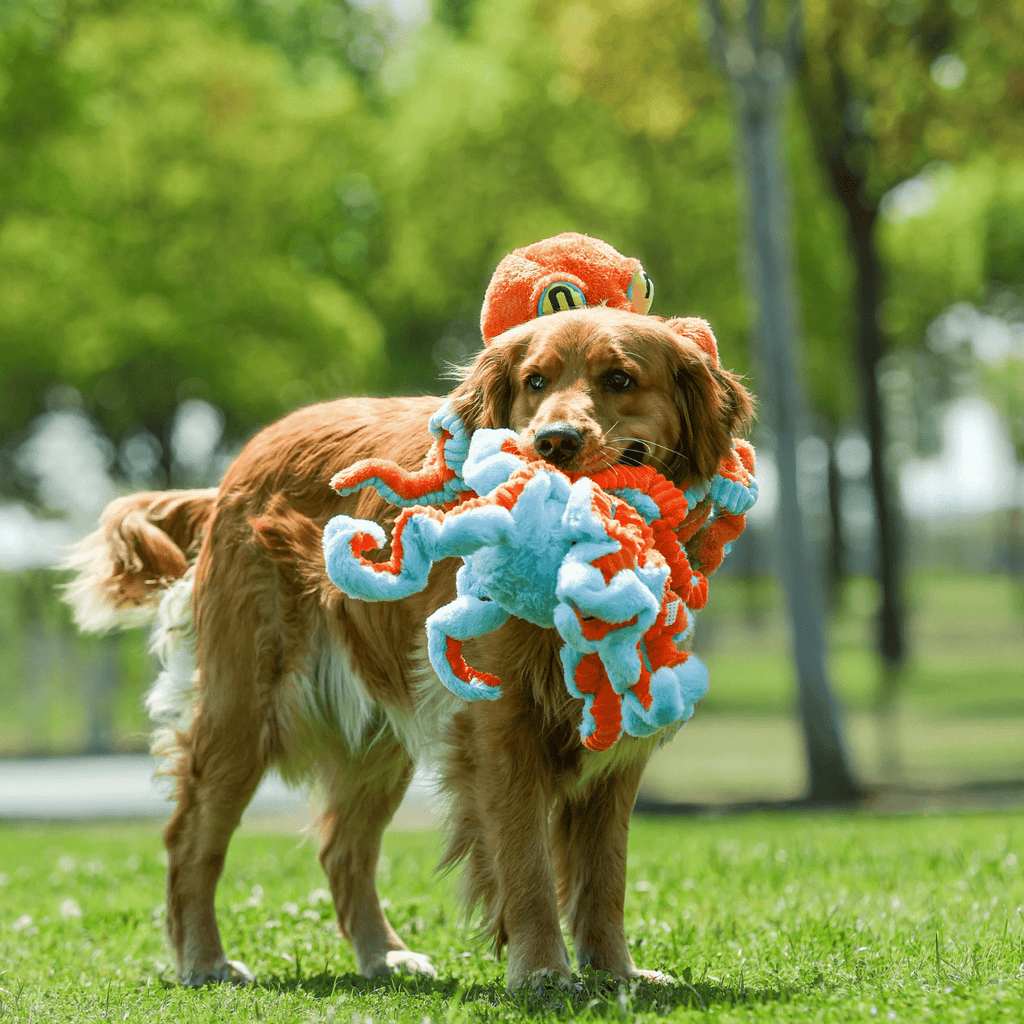 O Polvo Grande da Petta é um brinquedo interativo de tamanho impressionante, desenvolvido para cães de grande porte que adoram brincadeiras intensas. Com 50 cm de comprimento, ele possui oito pernas elásticas ideais para puxar, sacudir e interagir com outros cães. Seu corpo é feito com tecido ecológico resistente, reforçado com três camadas de proteção, e ainda conta com som interno para manter o interesse do pet.